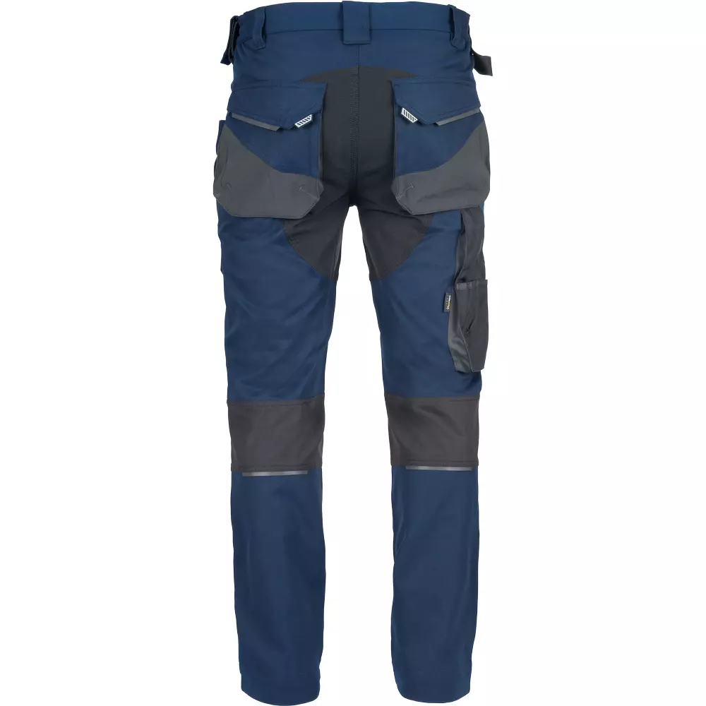 • polyesterová 4way strečová tkanina • multifunkční boční kapsy • zesílený rozkrok • zesílení v oblasti kolen s možností vložení chráničů kolen • reflexní detaily • nastavitelná délka nohavic