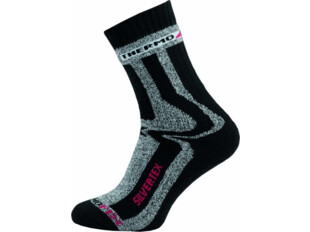 Sportovní trekingové ponožky se stříbrem. Obsahují stříbrná vlákna s antibakteriálním účinkem. Výborný odvod potu a dokonalá tepelná izolace. Elastická bandáž proti posunu ponožky v botě. Pohodlný lem. Vysoká kvalita materiálů a zpracování. Složení:75% Bavlna, 20% Polypropylen = siltex, 5% Elastan