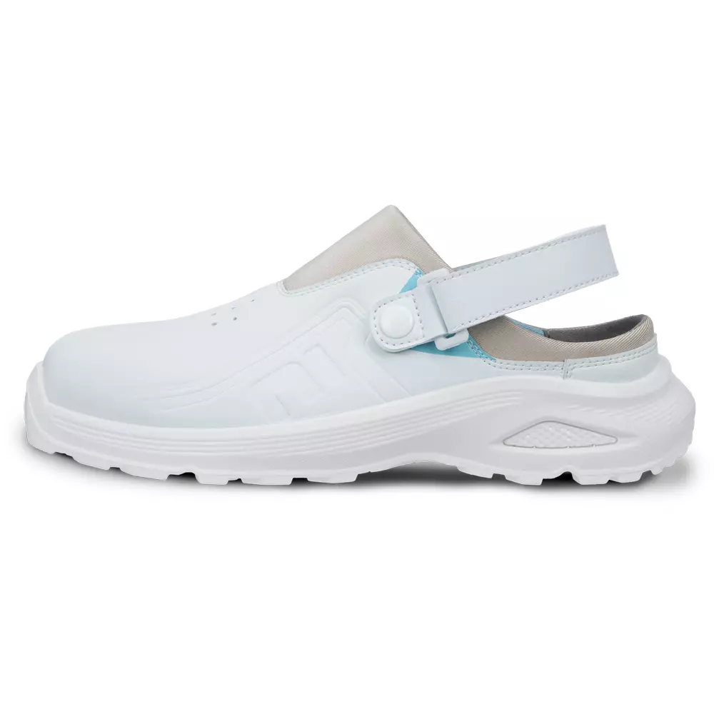 • bílý pracovní pantofel HYGOSAFE je navržený pro prostředí se zvýšenými nároky na hygienu, čistotu a komfort • dvouhustotní podešev PU/PU s vkladkou z NHP pěny zajišťuje výrazně měkčí došlap a vyšší pohodlí při celodenním nošení • unikátní kombinace hydrofobního mikrovlákna a neoprenu vytváří odolný, snadno udržovatelný svršek, který si zachovává pružnost a komfort • antibakteriální mesh podšívka podporuje ventilaci a příjemné klima uvnitř obuvi • odepínací patní pásek na suchý zip umožňuje upevnění obuvi dle individuálních požadavků pracovníka.