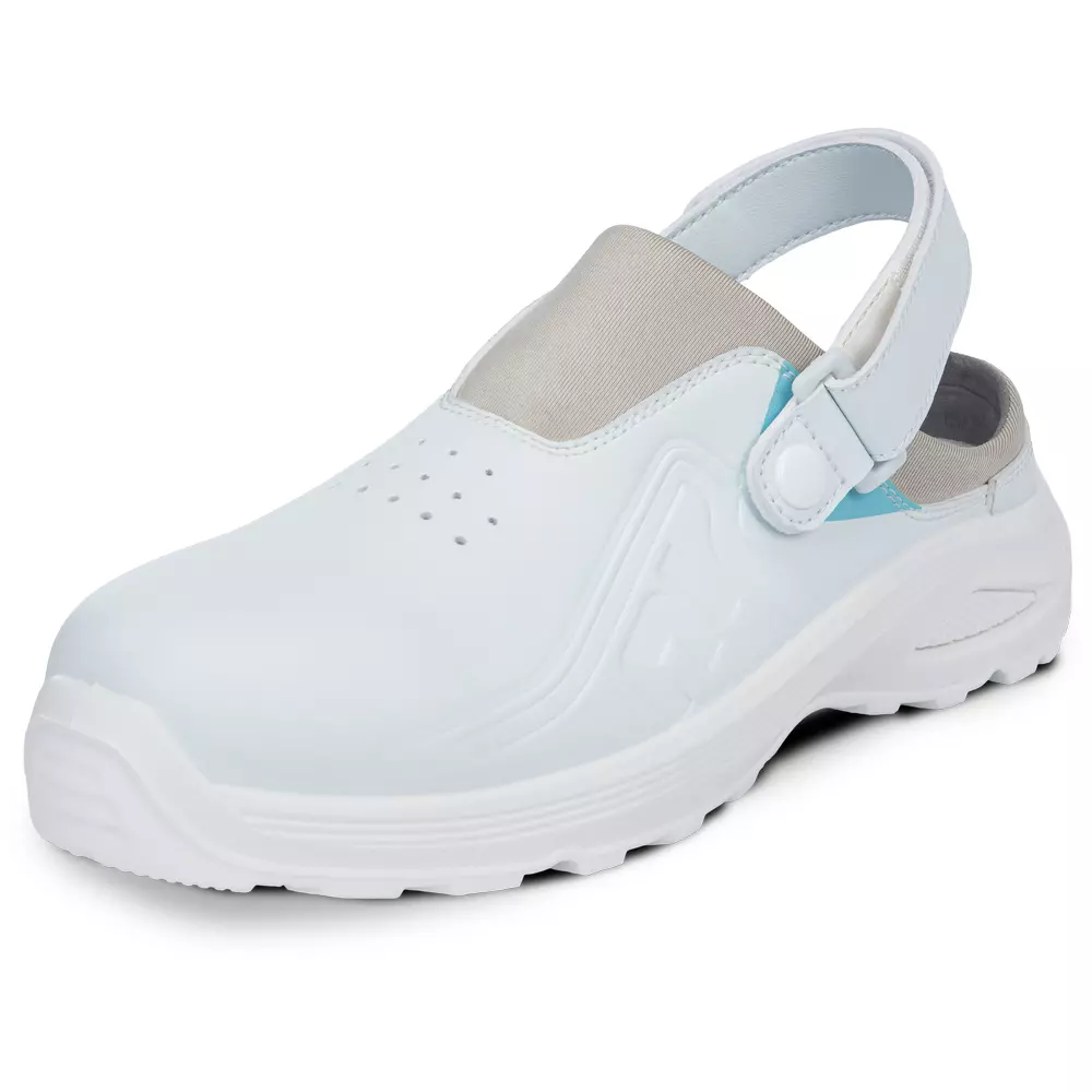 • bílý bezpečnostní pantofel HYGOSAFE je navržený pro prostředí se zvýšenými nároky na hygienu, čistotu a komfort • dvouhustotní podešev PU/PU s patní vkladkou z NHP pěny zajišťuje výrazně měkčí došlap a vyšší pohodlí při celodenním nošení • unikátní kombinace hydrofobního mikrovlákna a neoprenu vytváří odolný, snadno udržovatelný svršek, který si zachovává pružnost a komfort • bezpečnostní tužinka s příměsí uhlíkových vláken přináší nízkou hmotnost bez kompromisu na bezpečnosti • antibakteriální mesh podšívka podporuje ventilaci a příjemné klima uvnitř obuvi • odepínací patní pásek na suchý zip umožňuje upevnění obuvi dle individuálních požadavků pracovníka