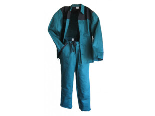 montérková souprava - kalhoty do pasu+blůza, kepr 245 g, zelená+černé doplňky, zdvojená kolena.