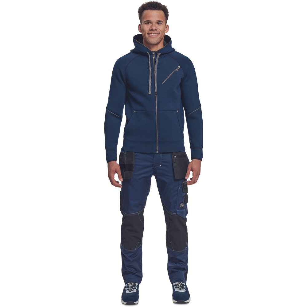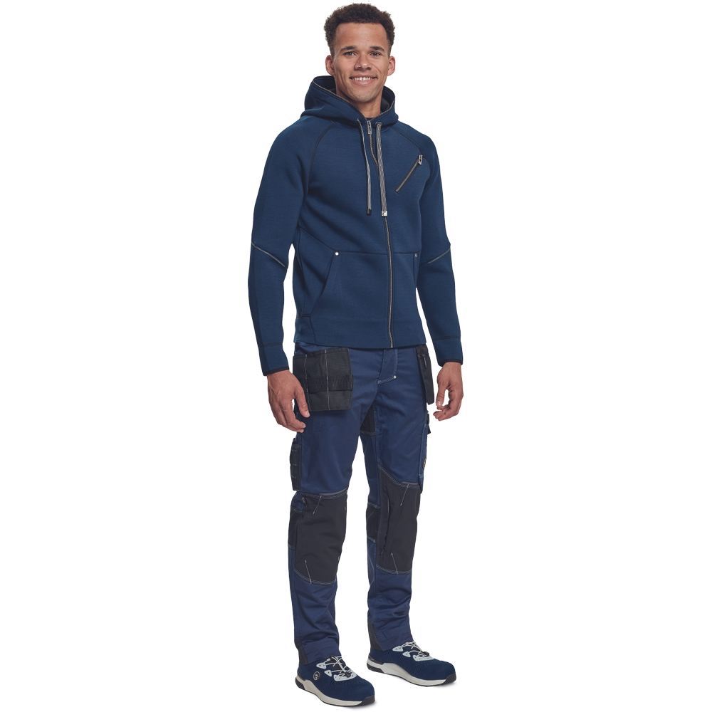celopropínací pánská mikina s kapucí; zapínání na zip je prodlouženo až po špičku kapuce; obvod kapuce lze upravit pomocí vložené tkanice; 2 postranní kapsy, 1 náprsní kapsa na zip; reflexní detaily.
