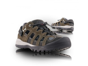 Bezpečnostní sandál S1, SRA - s ocelovou tužinkou , broušená hovězinová useň VELUR v tloušťce 1,7 - 1,9 mm , laminovaná prodyšná textilie MESH, HI-POLY - anatomicky tvarovaná s lehčené polyuretanové pěny potažená textilií MESH, antistatická, EVA/RUBBER - olejivzdorná, antistatická, protiskluzová, ČSN EN ISO 20345:2012 (EN ISO 20345:2011)