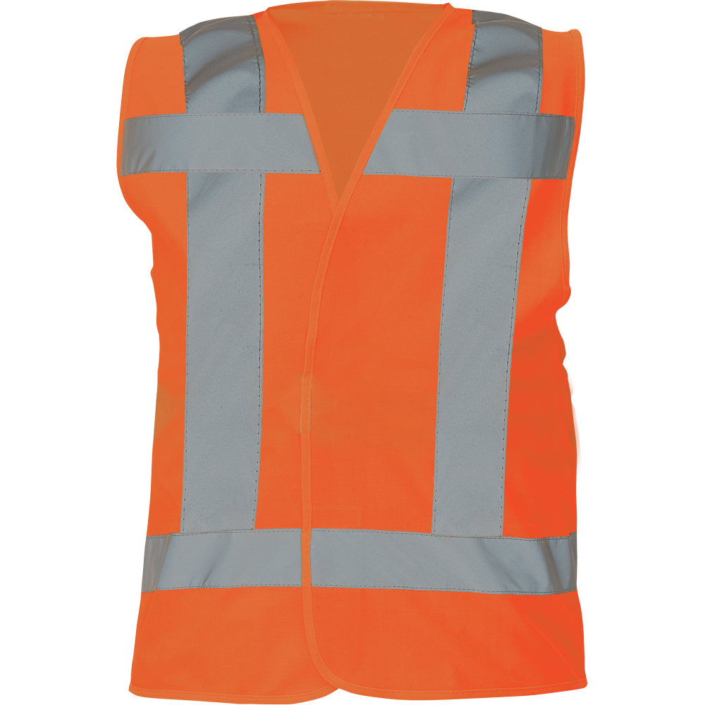 HI-VIS vesta certifikována pro použití na železnicích dle RIS 3279 TOM normy; reflexní pruhy přes ramena a pas; zapínání na suchý zip.