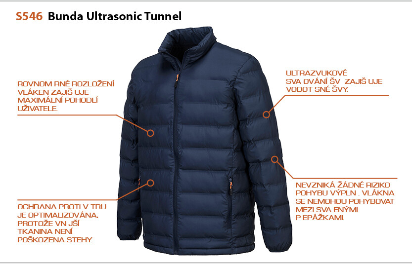 Bunda Ultrasonic Tunnel S546 poskytuje vynikající teplo a izolaci. Tento styl využívá revoluční tepelně izolační konstrukci. Lepené švy zlepšují odolnost proti vodě. Funkce Celozateplené provedení pro uchování tepla a příjemného pocitu Zateplené Insulatex podšívkou Skrytá kapsa na mobilní telefon 5 kapes pro bezpečné uložení Vyměnitelné zipy v modré, červené a zelené barvě jsou dodávány pro snadnou integraci firemních barev Kapsy na zip Elastické manžety pro bezpečné uchycení Snadné držáky na rukojeti připevněné ke všem zipům Vnější tkanina: 100% Polyester 65g Vnitřní tkanina: