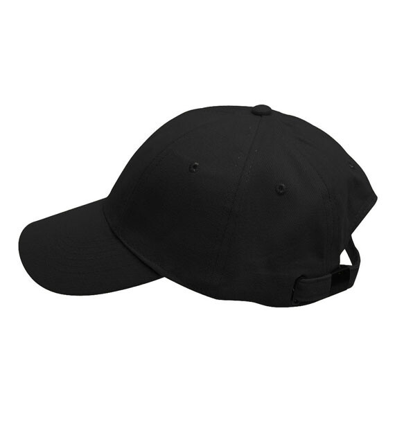 Baseballová šesti panelová čepice, díky posunutým švům ideální pro potisk či výšivku, zapínání na kovovou sponu. 100% česaná bavlna. Barva: černá Vel.UNI