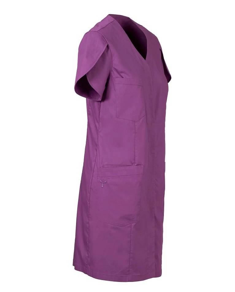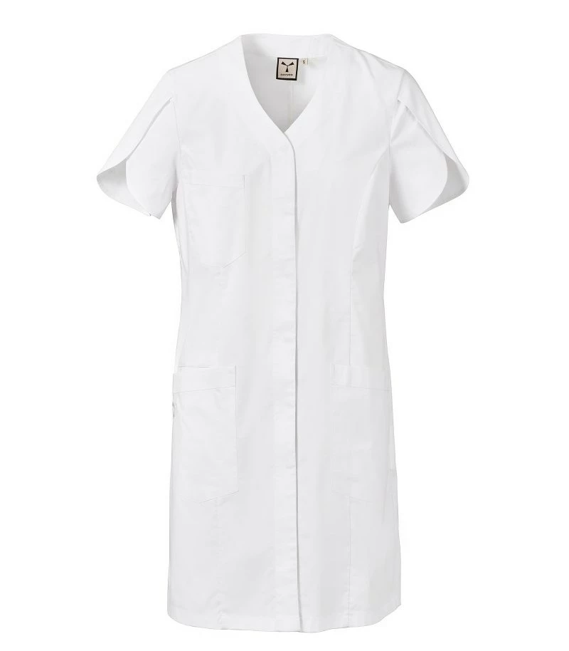 Dámský plášť s krátkým rukávem ve tvaru tulipánu, s výstřihem do V, z bavlněného popelínu, polyesteru a Lycry ® T400 ®, s vynikajícími elastickými a prodyšnými vlastnostmi. Kryté středové zapínání. Tři velké našité kapsy: jedna na hrudi; dvě spodní, jedna s ikonickou vrtulí Payper vyšitou tón v tónu a jedna vnitřní kapsa na smartphone. Zadní díl se středovým a bočním střihem. Rozparek ve spodní části pro usnadnění pohybu.