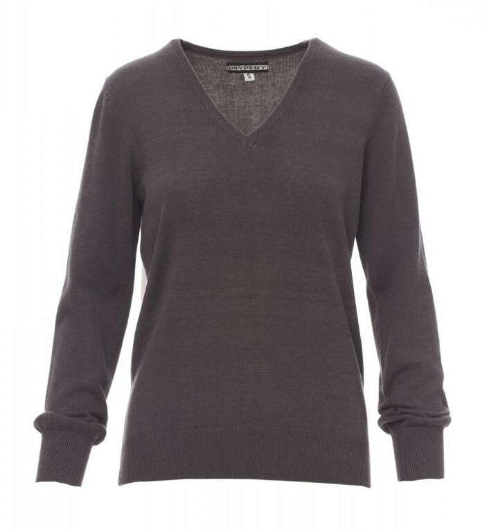 Dámský svetr s výstřihem do V, jemný rovný steh, střih beze švů, jemné žebrování u lemu výstřihu, na manžetách a na spodním lemu.