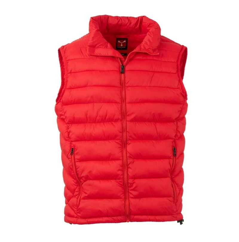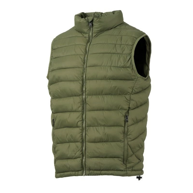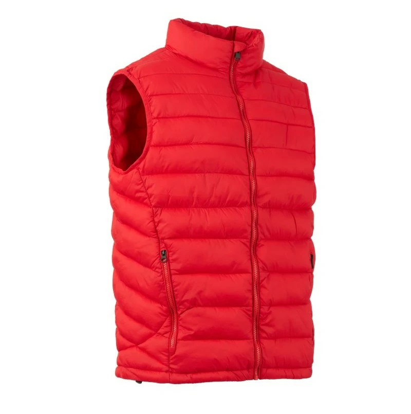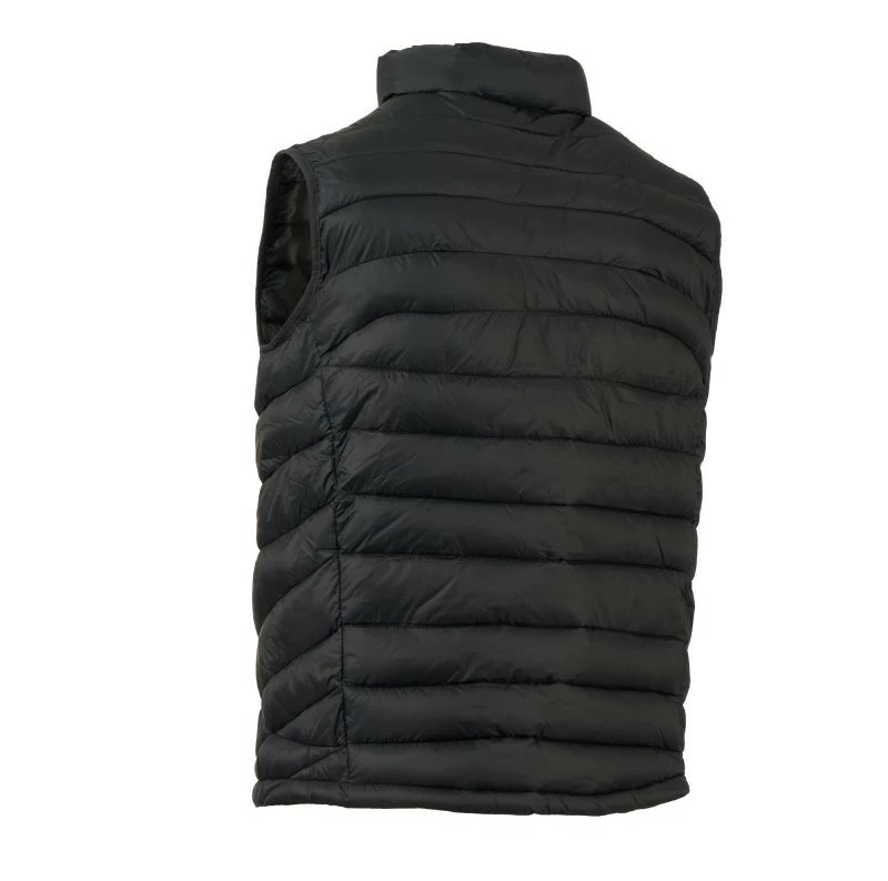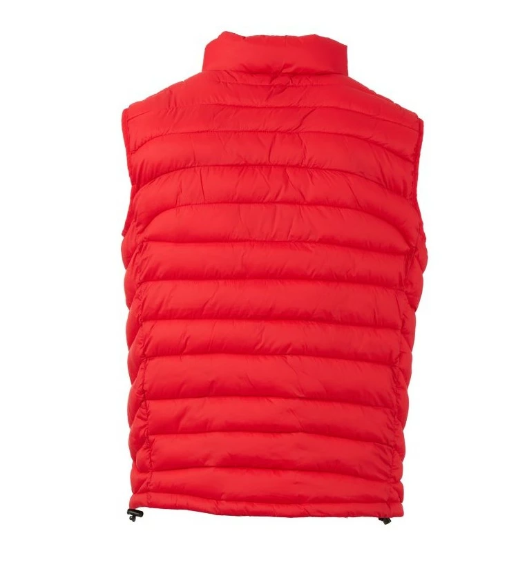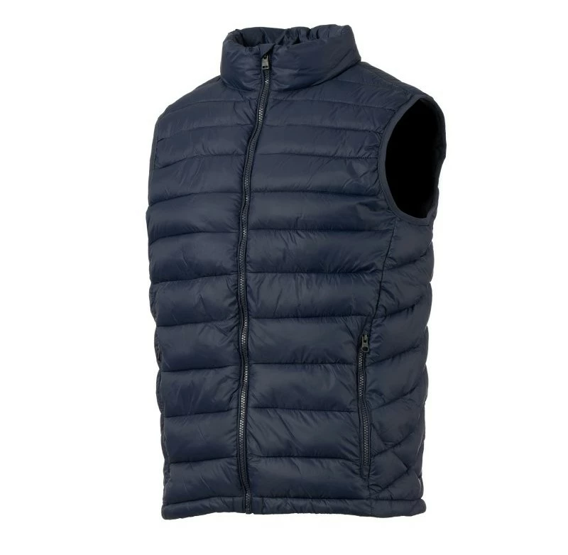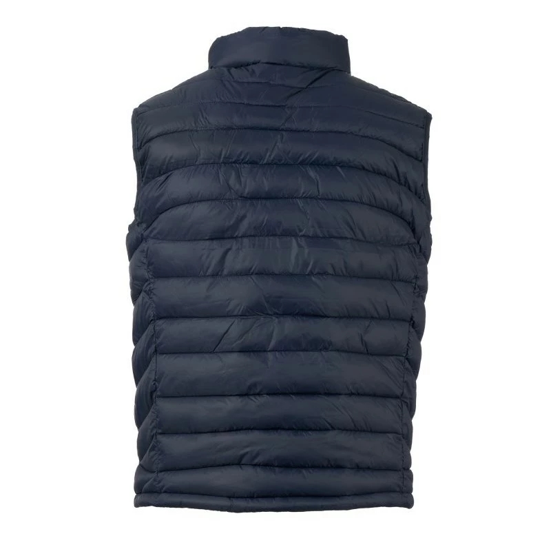 Pánská vesta s výplní z volných vláken (130g/m²), zapínání na plastový zip s kovovým jezdcem přizpůsobeným vrtulí. Dvě boční kapsy s viditelným zipem. Lemování sladěné barvy. Stažitelná spodní část na stahovací šňůrku. Oblečení lze uložit do kapsy na pravé straně.