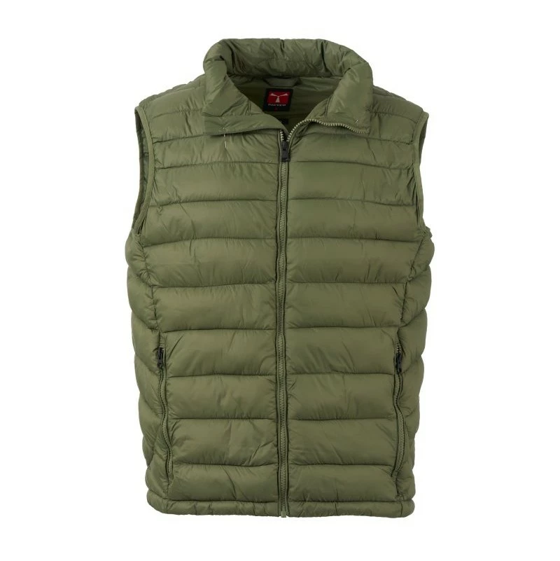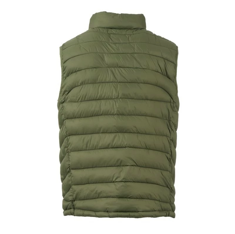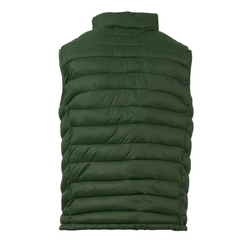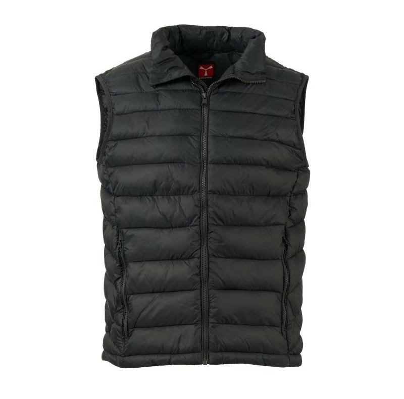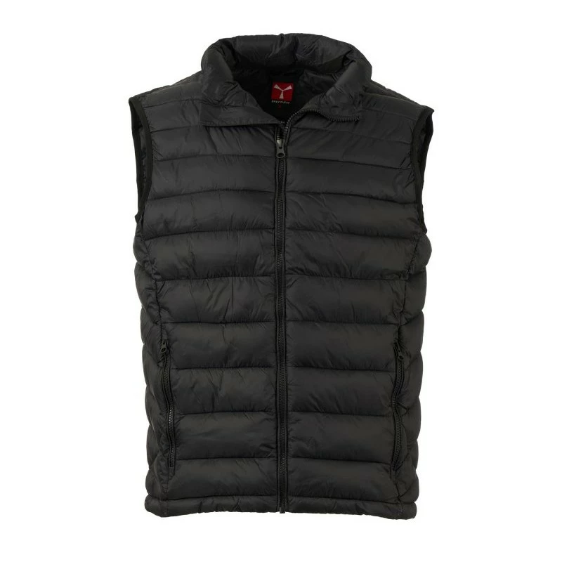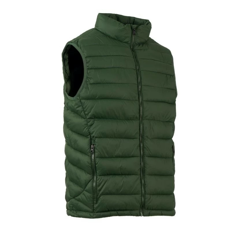 Pánská vesta s výplní z volných vláken (130g/m²), zapínání na plastový zip s kovovým jezdcem přizpůsobeným vrtulí. Dvě boční kapsy s viditelným zipem. Lemování sladěné barvy. Stažitelná spodní část na stahovací šňůrku. Oblečení lze uložit do kapsy na pravé straně.