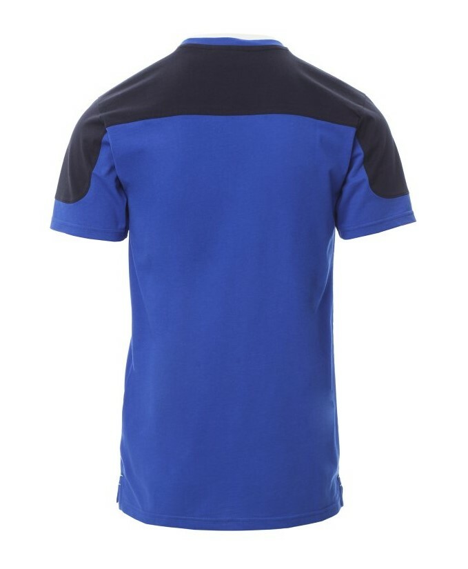 Tričko dvoubarevné, kapsička na hrudi s očkem na tužku, skryté prošití límečku a postranní vyztužovací páska.