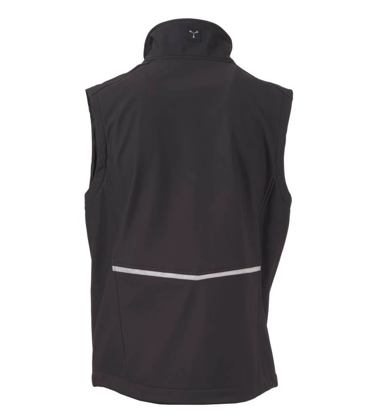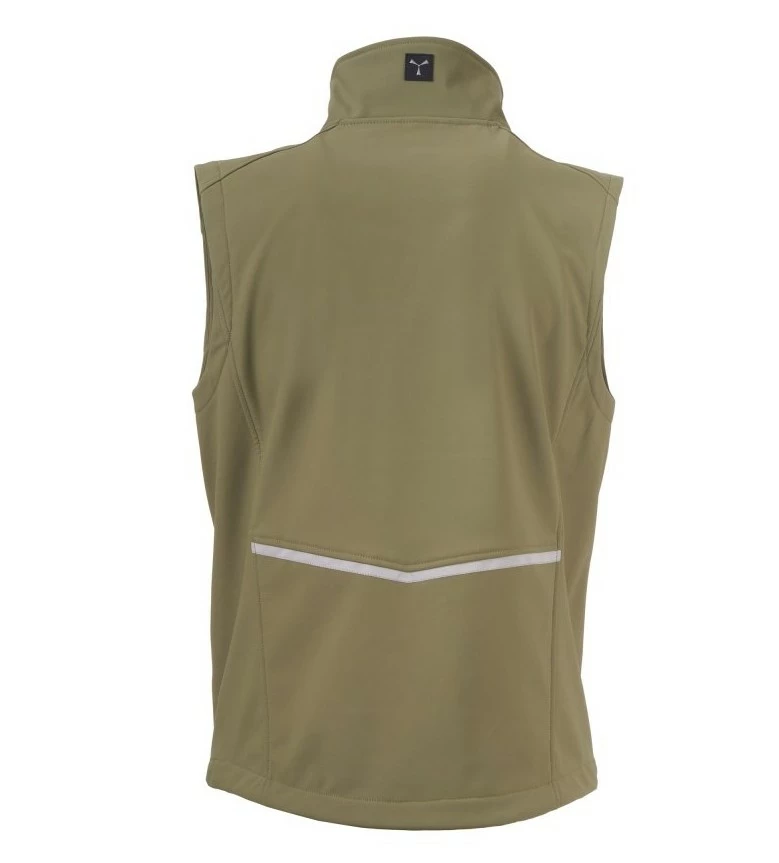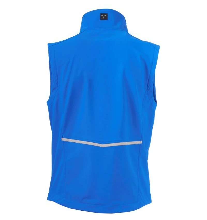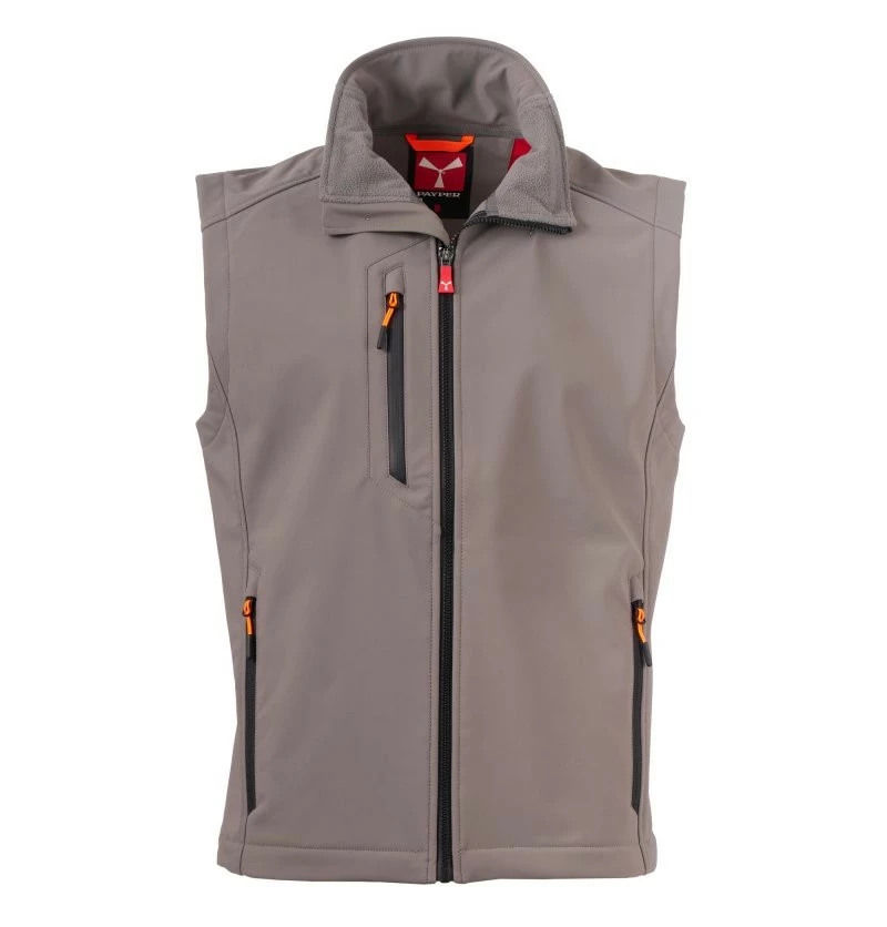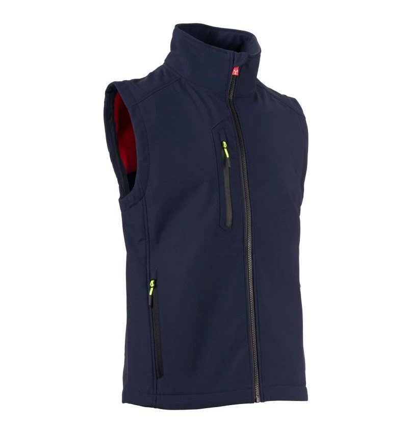 Pánská lehká softshellová vesta, 3 vrstvy, zapínání na zip SBS s kovovým jezdcem „semi-auto lock“ a přizpůsobeným taháčkem. Reflexní páska ve spodní části zad. Dvě boční kapsy na zip, jedna kapsa na hrudi s voděodolným zipem. Fluorescentní taháčky. Jedna vnitřní prostřižená kapsa na suchý zip. Spodní část stažitelná pomocí přizpůsobených zarážek.