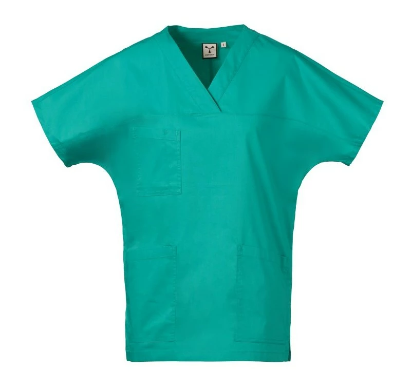 Halena s velmi krátkým a širokým rukávem pro volnost pohybu, s výstřihem do V, z bavlněného popelínu, polyesteru a Lycry ® T400 ®, s vynikajícími elastickými a prodyšnými vlastnostmi. Vodorovný střih na přední straně. Kapsa na hrudi s přihrádkou na pero. Dvě velké spodní našité kapsy. Zadní díl se středovým střihem. Boční rozparky pro usnadnění pohybu.