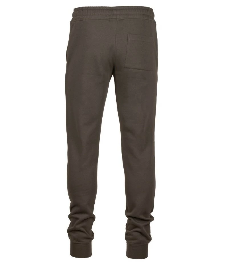Pánské kalhoty z teplákoviny, elastický pas se stahovací šňůrkou sladěné barvy. Dvě přední prostřižené kapsy s žebrováním a kapsička na zadní straně. Žebrování na spodní části nohavice.