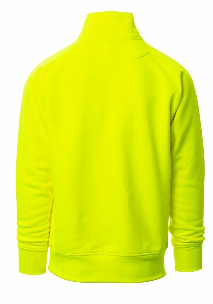 Pánská mikina, fluorescentní, s barevně sladěným plastovým polozipem s kovovým jezdcem, raglánové rukávy, manžety a pas s elastickým žebrováním, zesílené švy.