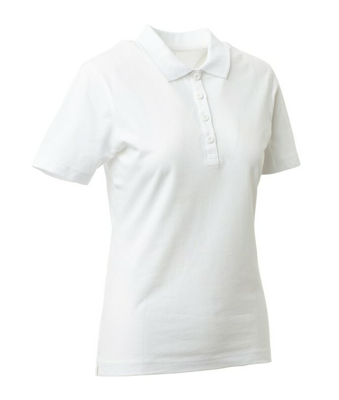 Vyštíhlená dámská polokošile s krátkým rukávem se 4 barevně sladěnými perleťovými knoflíky, postranní rozparky, prošití límečku kryté barevně sladěným páskem.