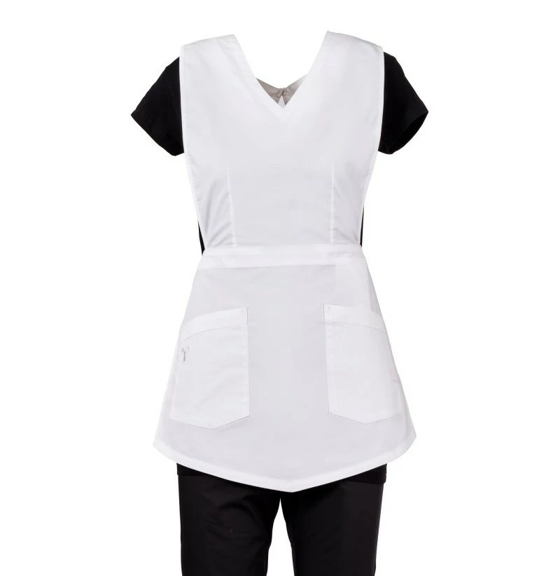 Dámská krátká zástěra s náprsenkou, z bavlněného popelínu, polyesteru a Lycry ® T400 ®, s vynikajícími elastickými a prodyšnými vlastnostmi. Zapínání v zadní části v pase na látkové pásky. Se dvěma velkými kapsami, z nichž jedna s ikonickou vrtulí Payper vyšívanou tón v tónu. Tvarovaná spodní část pro osobitý vzhled a svislé prošívání k zeštíhlení postavy.