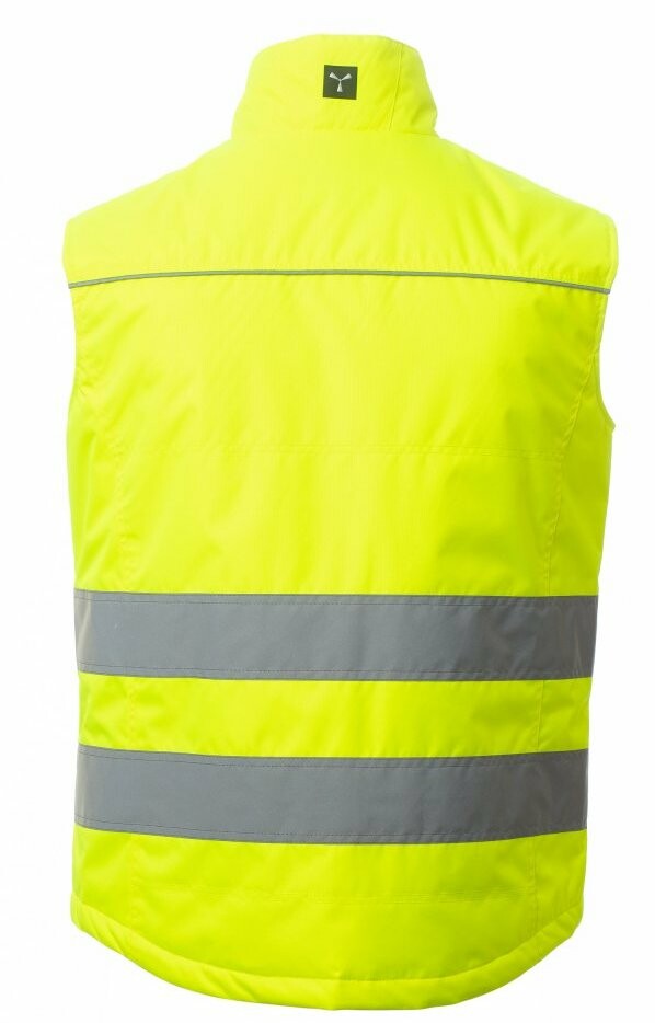 Unisexová zateplená vesta s vysokou viditelností, s reflexními pruhy na ramenou a na těle. Zapínání s kovovým jezdcem „semi-auto lock“ a přizpůsobeným taháčkem. Jedna dvoubarevná víceúčelová kapsa na hrudi s upínacím kroužkem na jmenovku a uzavírací klopou LOCK SYSTEM. Dvě vnější kapsy na zip. Vnitřní flísový límeček. Vnitřní kapsa na suchý zip.