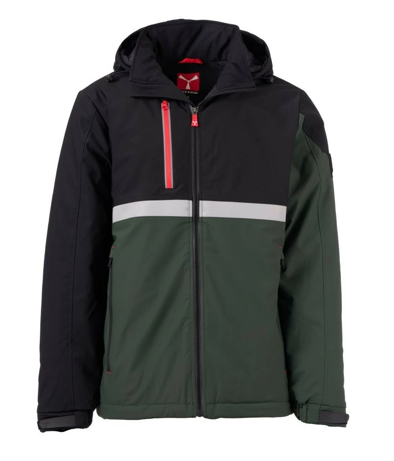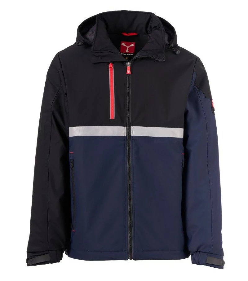 Pánský softshell 3 vrstvy, střední výplň (140g/m²), zapínání na zip SBS s kovovým jezdcem „semi-auto lock“ a přizpůsobeným taháčkem. Odnímatelná kapuce se stahovací šňůrkou. Přední reflexní páska na hrudi. Elastické stahovací manžety na suchý zip a vnitřní manžetka. Dvě boční kapsy na zip a jedna kapsa na hrudi na zip s reflexním prvkem. Prvek „life-saving“ na zadní straně, s vnitřním reflexním logem a zapínáním na zip. Dvě vnitřní kapsy, z nichž jedna tvarovaná na zip na pravé straně hrudi a druhá na tablet se zapínáním na suchý zip. Spodní část stažitelná pomocí přizpůsobených zarážek.