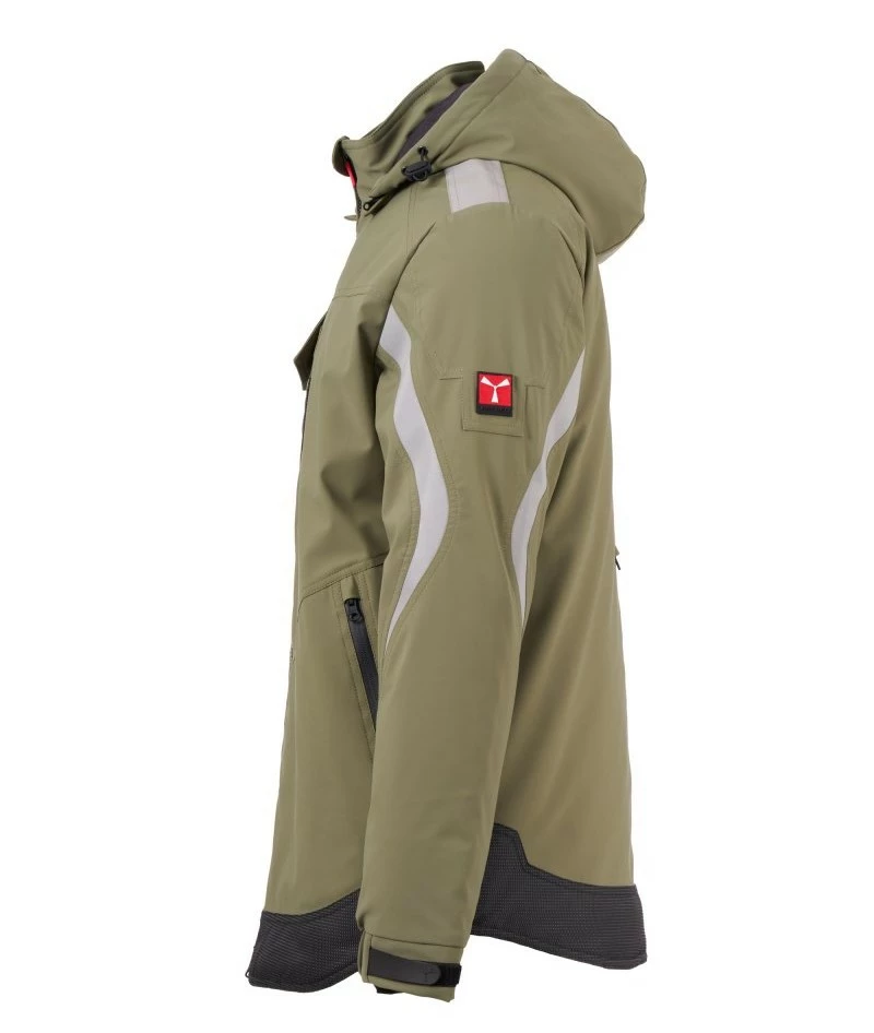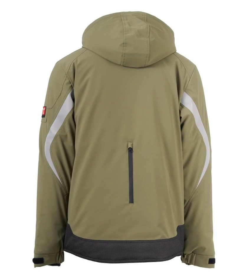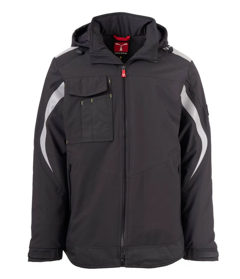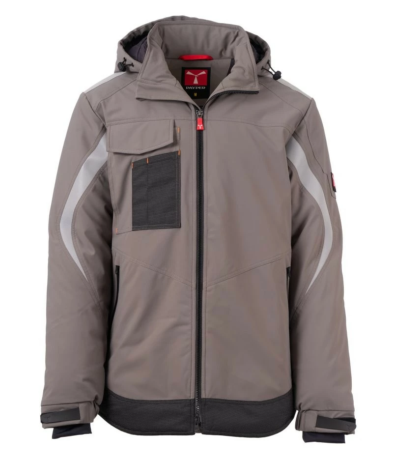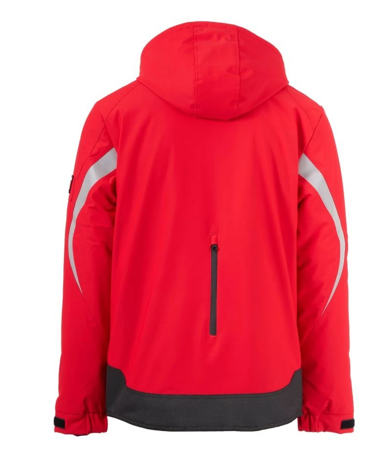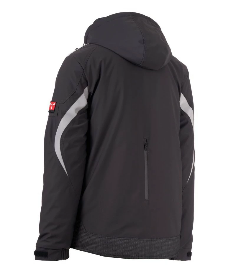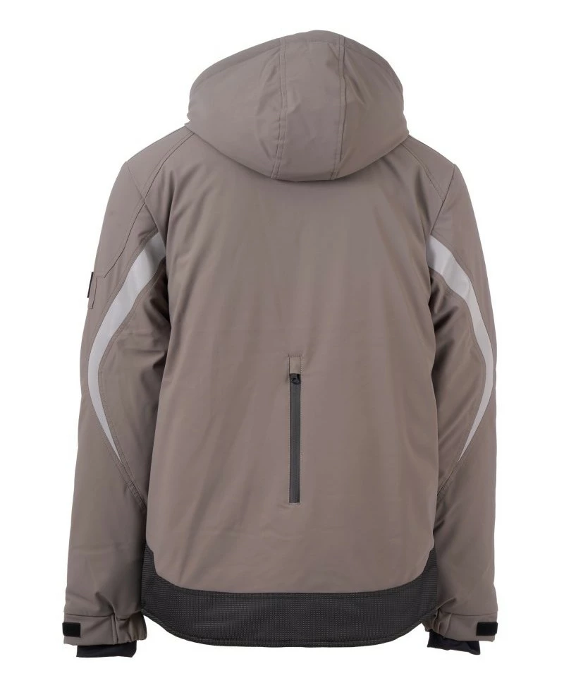 Pánský softshell 3 vrstvy, střední výplň (140g/m²), zapínání na zip SBS s kovovým jezdcem „semi-auto lock“ a přizpůsobeným taháčkem. Odnímatelná kapuce se stahovací šňůrkou. Reflexní páska na ramenou a pažích. Elastické stahovací manžety na suchý zip a s vnitřní manžetou. Kapsa na hrudi Lock System s klopou, kroužkem na jmenovku a očkem na pero. Dvě boční kapsy s voděodolným zipem. Prvek „life-saving“ na zadní straně, s vnitřním reflexním logem a voděodolným zipem. Dvě vnitřní kapsy, z nichž jedna tvarovaná na zip na pravé straně hrudi a druhá na tablet se zapínáním na suchý zip na levé straně. Spodní část stažitelná pomocí přizpůsobených zarážek. Tečkovaná tkanina s reflexním efektem.