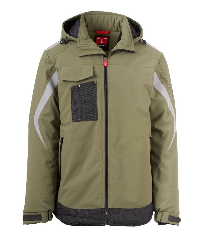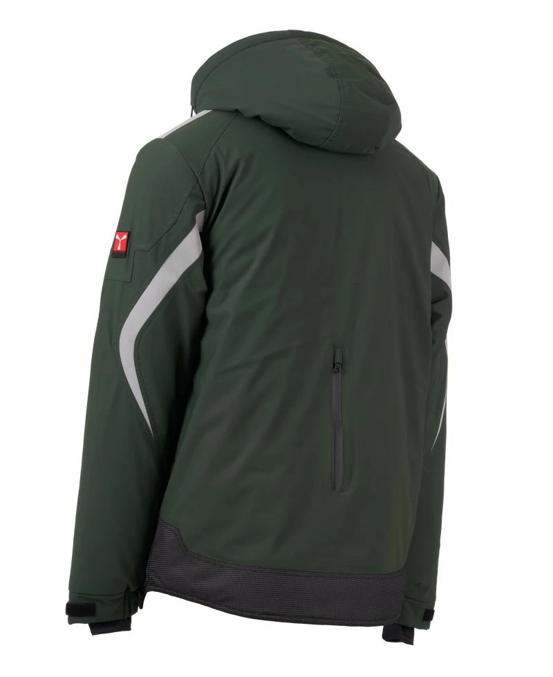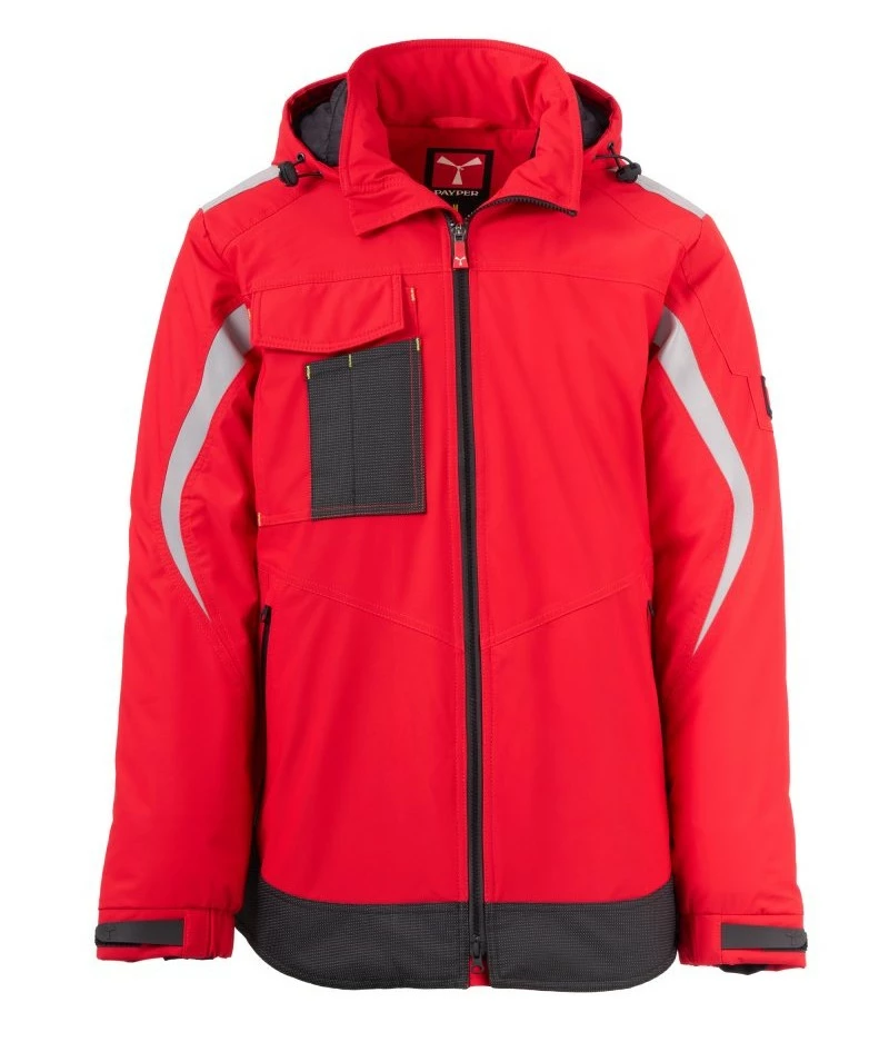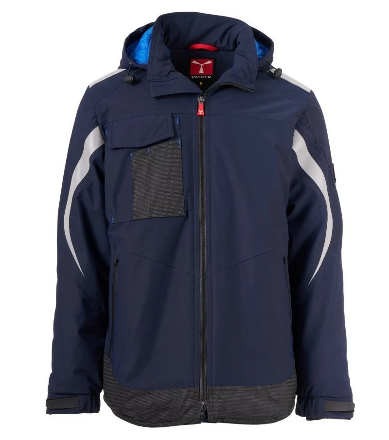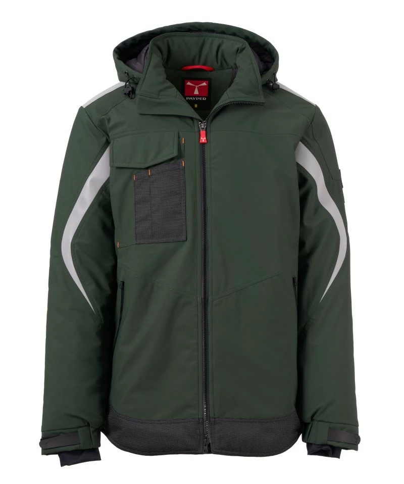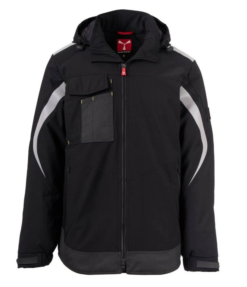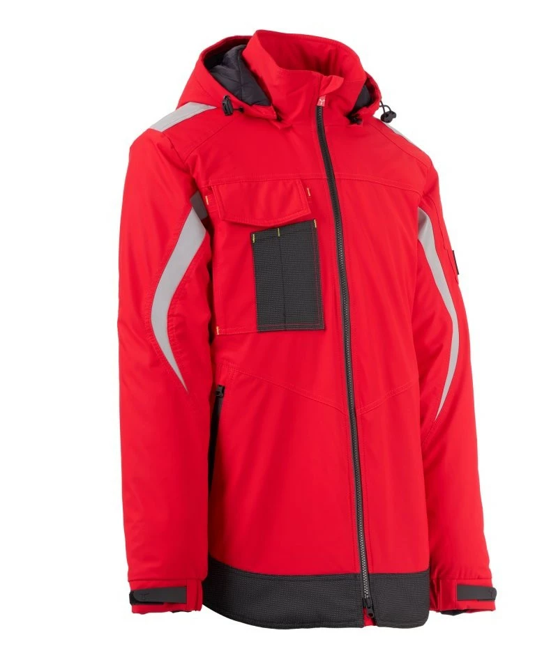 Pánský softshell 3 vrstvy, střední výplň (140g/m²), zapínání na zip SBS s kovovým jezdcem „semi-auto lock“ a přizpůsobeným taháčkem. Odnímatelná kapuce se stahovací šňůrkou. Reflexní páska na ramenou a pažích. Elastické stahovací manžety na suchý zip a s vnitřní manžetou. Kapsa na hrudi Lock System s klopou, kroužkem na jmenovku a očkem na pero. Dvě boční kapsy s voděodolným zipem. Prvek „life-saving“ na zadní straně, s vnitřním reflexním logem a voděodolným zipem. Dvě vnitřní kapsy, z nichž jedna tvarovaná na zip na pravé straně hrudi a druhá na tablet se zapínáním na suchý zip na levé straně. Spodní část stažitelná pomocí přizpůsobených zarážek. Tečkovaná tkanina s reflexním efektem.