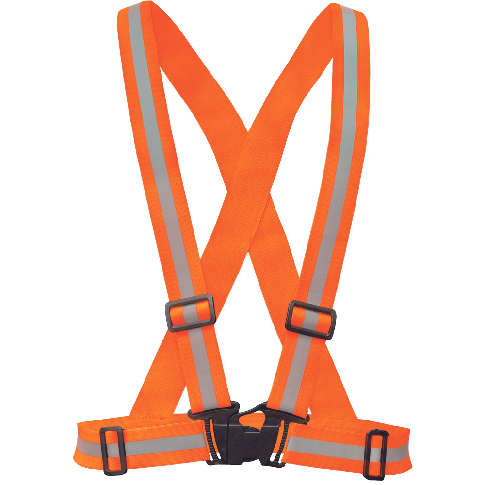 elastický reflexní kříž; šířka popruhů 4 cm; šířka reflexního pásku 1,5 cm; nastavitelná délka přes ramena a obvod pasu (max. 160 cm); přední zapínání plastovou přezkou; EN 13356: 2001 - viditelné doplňky pro neprofesionální použití; zabaleno v plastovém sáčku s Euro otvorem na zavěšení.