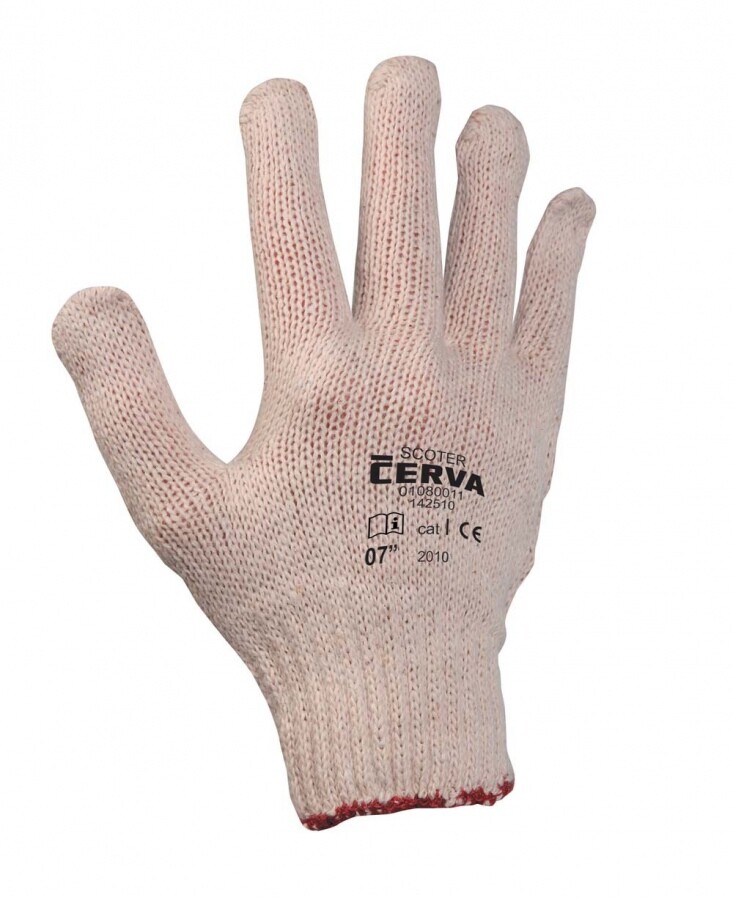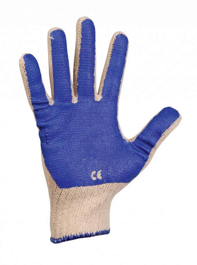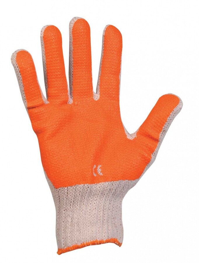 • pletené bezešvé bavlněné různobarevné rukavice • polomáčené v barevném PVC v dlani a na prstech • pružná manžeta