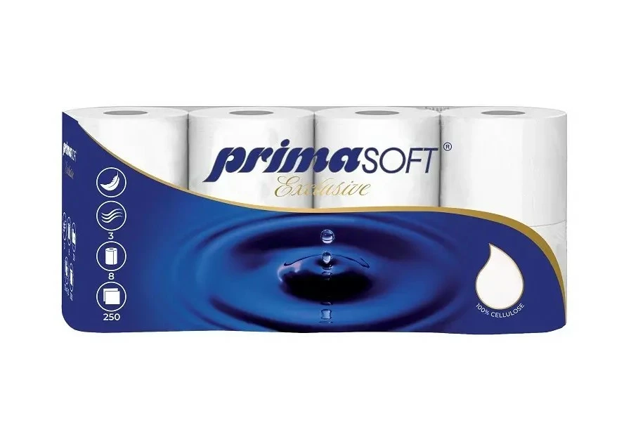 Toaletní papír PrimaSoft Exclusive, 3-vrstvý, 8 ks